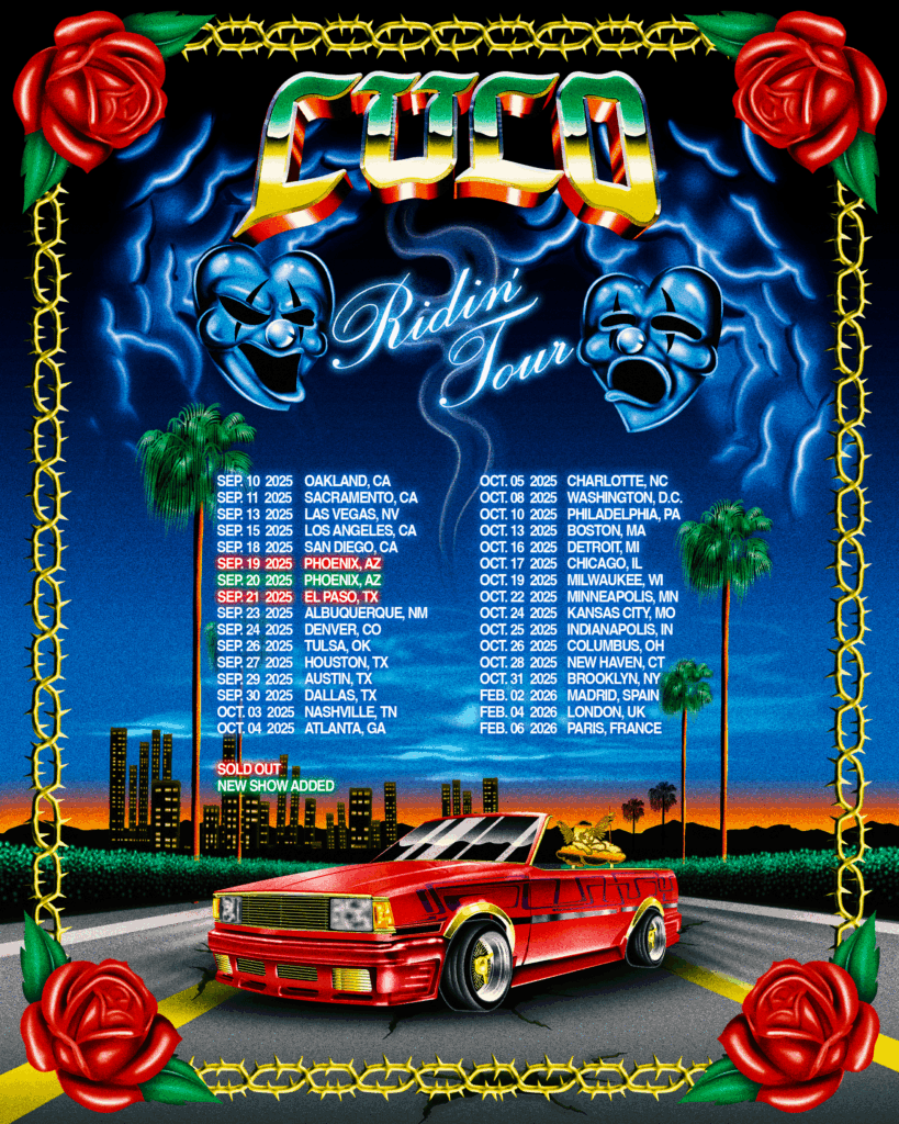 Omar Banos, conocido profesionalmente como Cuco, es un cantante, compositor e instrumentista estadounidense originario de Hawthorne, California. El artista promueve “Ridin’”, un emotivo homenaje a sus raíces en Los Ángeles. La gira #Ridin”comienza en California en septiembre, durante el Mes de la Herencia Hispana, e incluye un concierto estelar en su ciudad natal en el legendario Greek Theatre de L.A. Platicamos con el artista para La Banda Elástica.