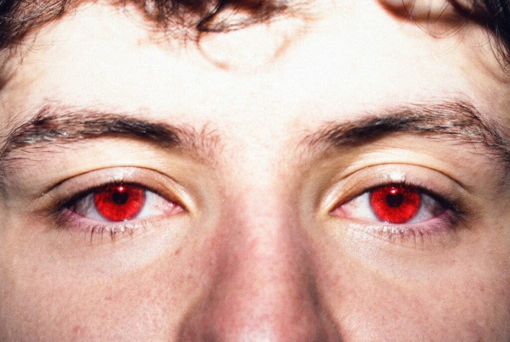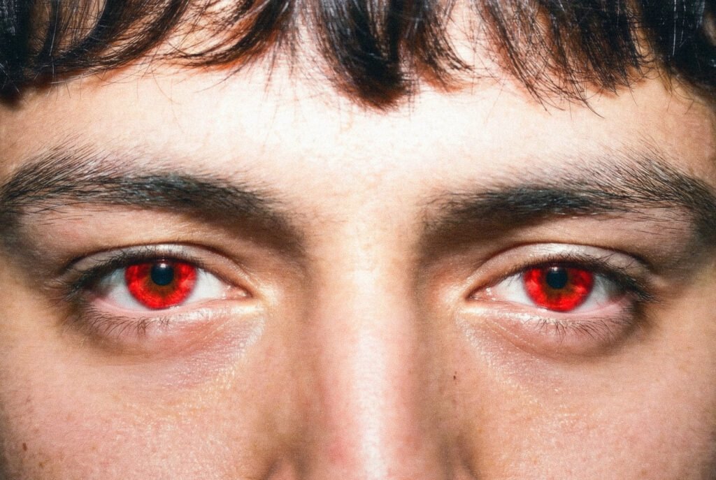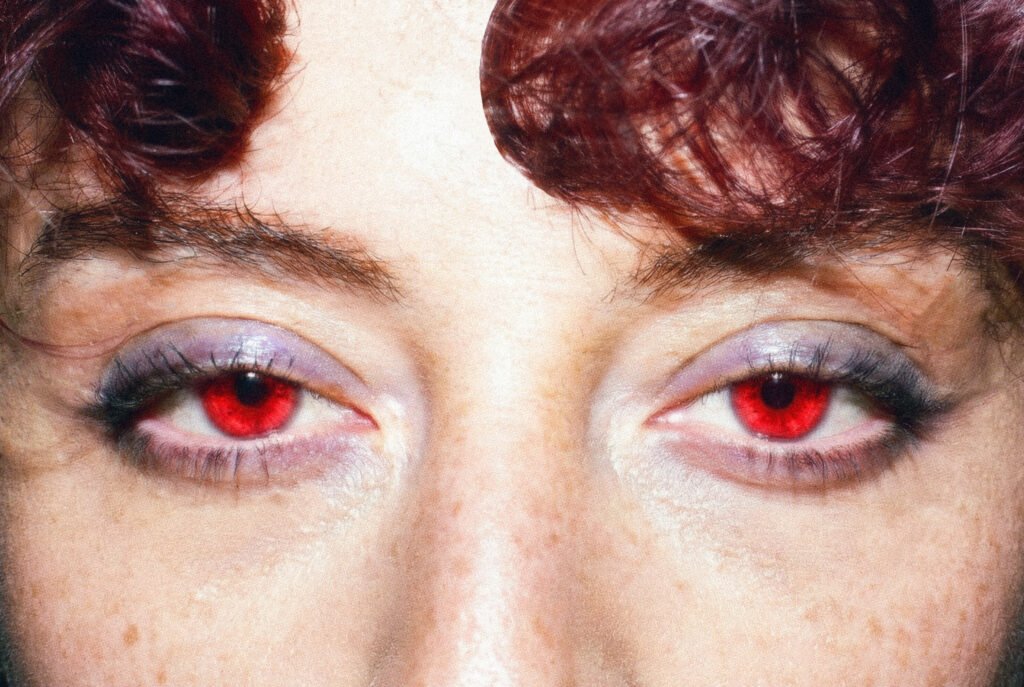 En las fotos aparece el tema de los ojos rojos y la manzana. ¿De dónde viene?