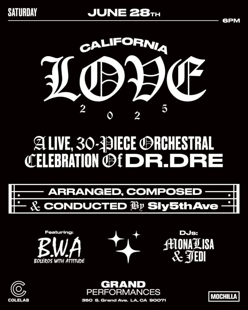 Grand Performances, la serie de conciertos gratuitos al aire libre más emblemática de la ciudad, sube el volumen este sábado con “California Love: Una Celebración Orquestal a Dr. Dre”, un homenaje que difumina géneros bajo la batuta del compositor, productor y multi-instrumentista ganador del GRAMMY Sly5thAve.