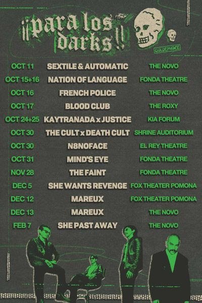 Casi es Día de Muertos…o Halloween, como lo quieras celebrar. Y previo a esa noche de brujas, L.A. se viste de negro con una serie de conciertos del ciclo Para los Darks, con bandas como French Police, She Wants Revenge, Blood Club y más, que invaden la ciudad.